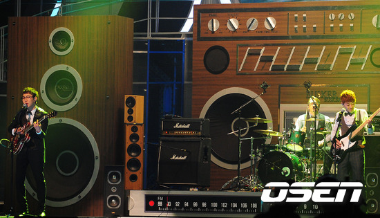 21일 밤 서울 경희대학교 평화의 전당에서 열린 Mnet ‘슈퍼스타K3’ 네 번째 생방송 무대에서 버스커버스커가 화려한 공연을 펼치고 있다.
