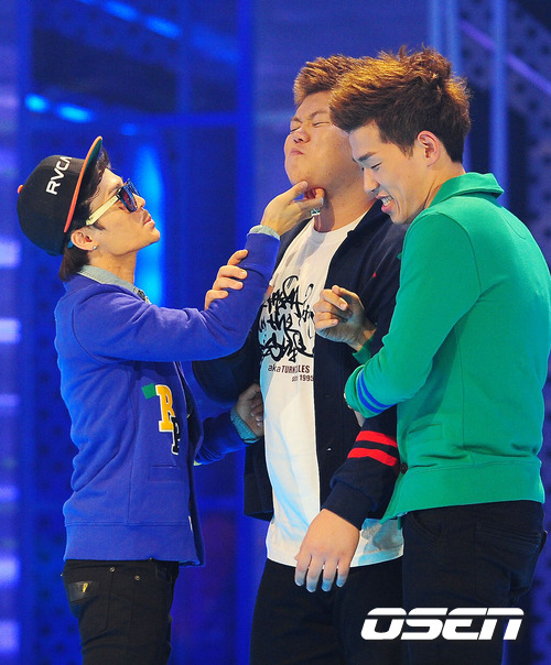 21일 밤 서울 경희대학교 평화의 전당에서 열린 Mnet ‘슈퍼스타K3’ 네 번째 생방송 무대에서 김도현의 탈락이 확정된 후 울랄라 세션의 김명훈이 김도현의 턱을 만지며 위로하고 있다.
