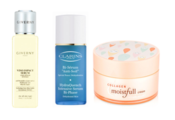 지베르니의 ‘비노 임팩트 세럼’은 조금만 발라도 피부 보습과 탄력이 개선되는 고수분·고농축 에센스로 피부가 건조되는 것을 막아준다. 클라란스의 ‘하이드라퀀치 세럼’은 각질층의 방어벽을 강화시켜 외부로 수분이 증발하는 것을 막아주고, 유·수분 보호막을 강화시켜 수분이 증발하는 것을 막아주는 을 발라 피부 유·수분 밸런스를 맞춰준다. 에뛰드의 ‘수분가득 콜라겐 크림’은 바오밥 나무 추출물과 마린콜라겐을 배합하여 촉촉하고 탱탱한 피부를 만들어 주는데 효과적이다.