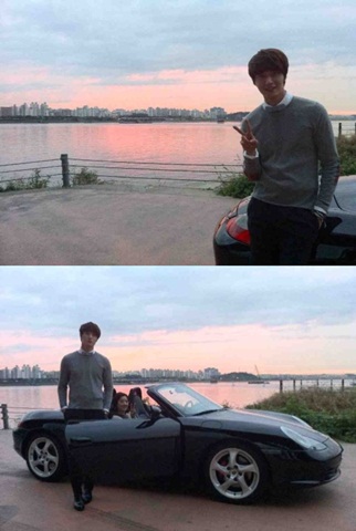 사진 속 정일우는 고급 승용차 옆에 서 있는 모습으로 차 안에 앉아있는 이청아는 손으로 '브이'를 그리고 있다. 또한 깔끔한 스웨터와 셔츠로 코디해 댄디한 이미지를 더했다.