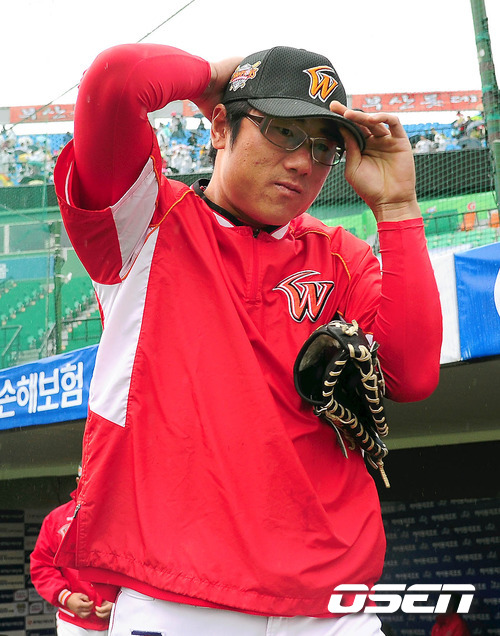 '2011 롯데카드 프로야구 플레이오프' 5차전이 벌어질 부산 사직 야구장에 비가 오는 가운데 SK 박정권이 몸을 풀기위해 외야로 나가고 있다.