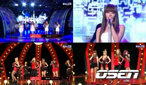 [OSEN=박미경 인턴기자]걸그룹 시크릿이 22일 오후 MBC ‘쇼! 음악중심(이하 음중)' 첫 무대에서 타이틀 곡 ’사랑은 무브‘와 ’웃지 좀 마‘를 선보이며 열정적인 퍼포먼스로 시선을 끌었다.