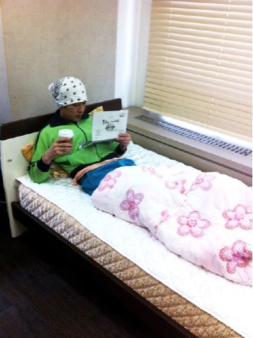 사진 속 고영욱은 침대 머리에 등을 기대고 편히 누운 채 대본을 보고 있다. 특히 한 손에는 커피 한 잔을 들고 있어 럭셔리한(?) 배우의 휴식을 보여준다.