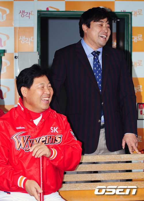 현역 시절 삼성에서 이만수 대행과 함께 한솥밥을 먹은 양준혁 SBS 해설위원은 "요즘 감독님 뛰어나가시는 폼이 멋있다"며 덕담을 건넸고, 이 대행도 "고맙다. 현역 때 그렇게 뛰어다녔으면 도루 좀 했을텐데"라며 껄껄 웃었습니다.