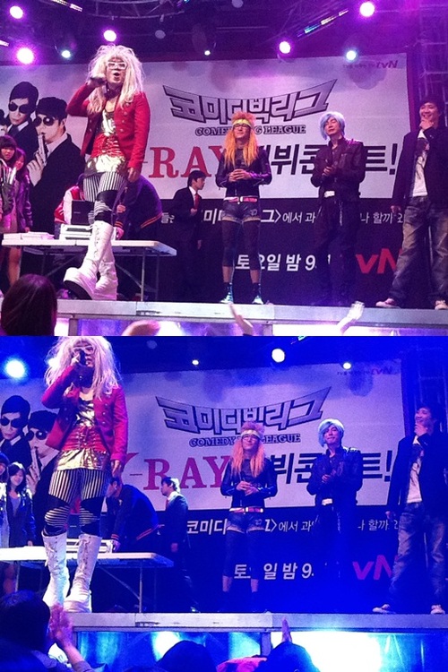 개통령은 이날 동대문의 한 쇼핑몰 앞에 ‘코미디 빅 리그 X-RAY 데뷔 콘서트’ 배너를 걸고 시민들 앞에 섰다. 현란한 가발과 가죽 의상을 갖춰 입은 모습은 일본의 비주얼록 밴드를 연상시키며 많은 시민들의 시선을 빼앗았다.