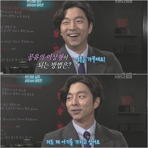 공유는 결혼에 대해 확고히 할 것이라며 "언젠가는 하겠다. 저도 제 아이를 갖고 싶다"고 말했다.