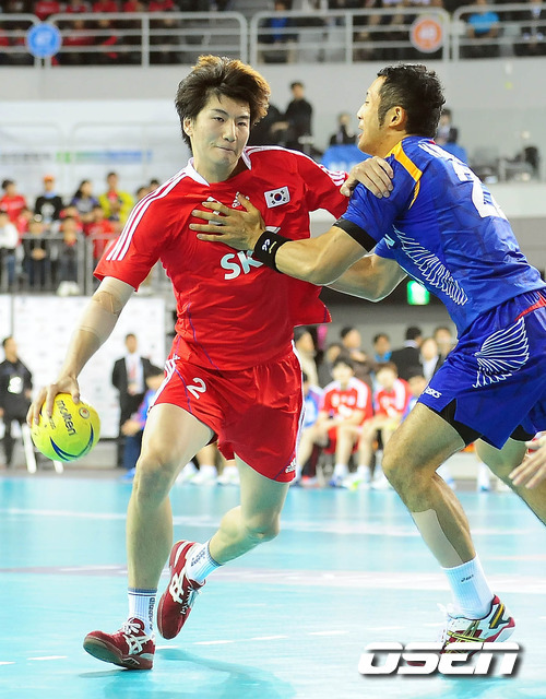 [OSEN= 백승철 인턴기자] 23일 오후 서울 방이동 올림픽공원 SK 올림픽핸드볼경기장에서 열린 한국과 일본과의 2012 런던올림픽 핸드볼 아시아 남자예선 경기 전반 정의경이 드리블을 하고 있다.