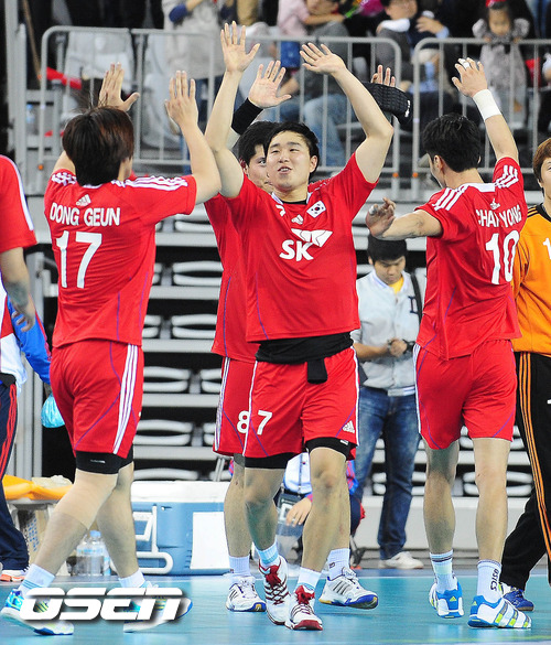 [OSEN=올림픽공원 ,백승철 인턴기자] 23일 오후 서울 방이동 올림픽공원 SK 올림픽핸드볼경기장에서 열린 한국과 일본과의 2012 런던올림픽 핸드볼 아시아 남자예선 경기, 경기종료후 한국 선수들이 기뻐하고 있다.