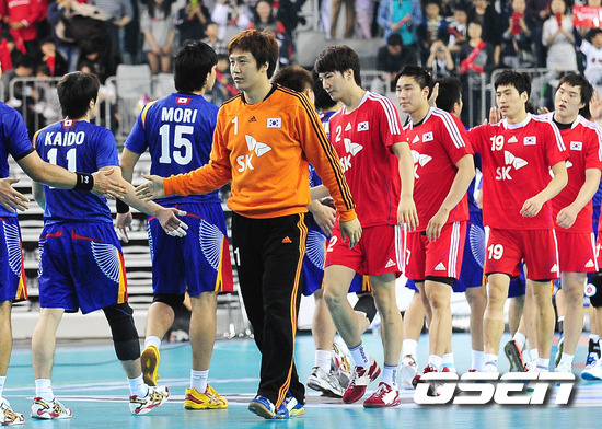 [OSEN=올림픽공원 ,백승철 인턴기자] 23일 오후 서울 방이동 올림픽공원 SK 올림픽핸드볼경기장에서 열린 한국과 일본과의 2012 런던올림픽 핸드볼 아시아 남자예선 경기, 경기종료후 선수들이 악수를 나누고 있다.