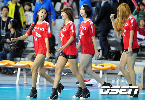 [OSEN=올림픽공원 ,백승철 인턴기자] 23일 오후 서울 방이동 올림픽공원 SK 올림픽핸드볼경기장에서 열린 한국과 일본과의 2012 런던올림픽 핸드볼 아시아 남자예선 경기 하프타임 씨스타가 축하공연을 축하공연을 펼치고 있다.