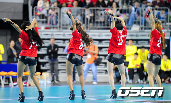 [OSEN=올림픽공원 ,백승철 인턴기자] 23일 오후 서울 방이동 올림픽공원 SK 올림픽핸드볼경기장에서 열린 한국과 일본과의 2012 런던올림픽 핸드볼 아시아 남자예선 경기 하프타임 씨스타가 축하공연을 축하공연을 펼치고 있다.
