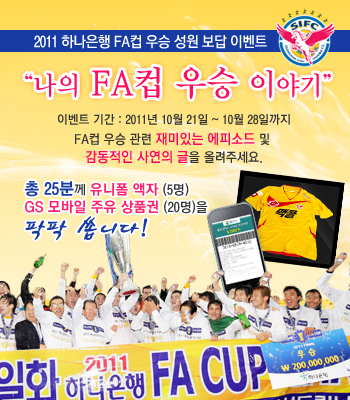 성남 일화는 대한축구협회가 주최, 주관하고 하나은행에서 후원한 '2011 하나은행 FA컵' 우승을 기념하고자 팬들을 위한 우승 성원 보답 이벤트를 마련했다.