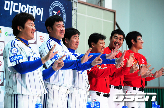 오는 25일 열리는 '2011 롯데카드 프로야구 한국시리즈' 1차전 삼성 라이온즈와 SK 와이번스 경기에 앞서 24일 대구 시민체육관에서 미디어데이 행사가 열렸다.이날 미디어데이 행사에는 삼성은 류중일 감독 진갑용, 최형우 선수가 SK는 이만수 감독 대행과 박정권,이호준 선수가 참석했다.