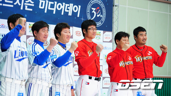오는 25일 열리는 '2011 롯데카드 프로야구 한국시리즈' 1차전 삼성 라이온즈와 SK 와이번스 경기에 앞서 24일 대구 시민체육관에서 미디어데이 행사가 열렸다.이날 미디어데이 행사에는 삼성은 류중일 감독 진갑용, 최형우 선수가 SK는 이만수 감독 대행과 박정권,이호준 선수가 참석했다.