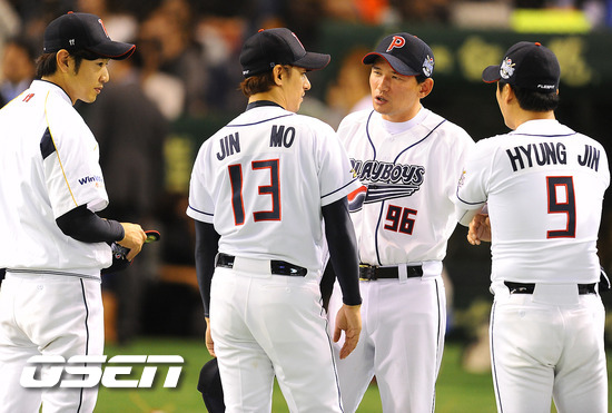 24일 오후 일본 도쿄돔에서 열린 '제2회 한일드림게임' 경기전 배우 황정민과 주진모가 이야기를 나누고 있다.