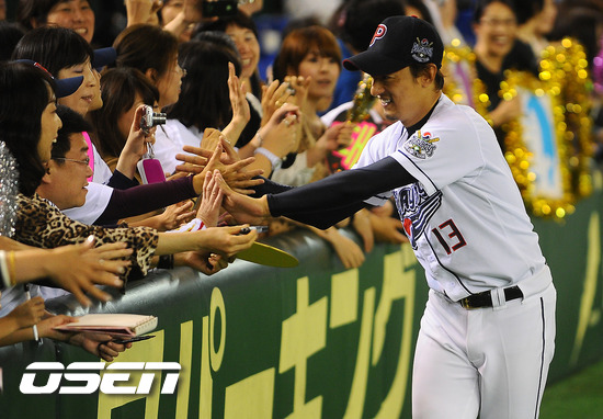 경기종료 후 플레이포이즈 주진모가 팬과 인사를 나누고 있다. / soul1014@osen.co.kr
