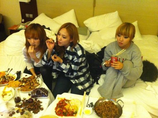 그룹 미쓰에이의 멤버 민이 지아,페이와 함께 엄청난 양의 음식을 먹는 사진을 공개했다.