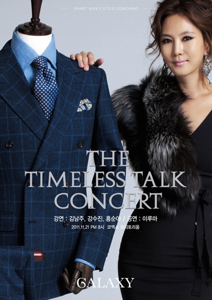 제일모직 갤럭시는 오는 11월 21일과 24일, 3인의 여성을 초빙하는 형식의 '더 타임리스 토크(The Timeless Talk)' 콘서트를 개최한다. 이 토크쇼에는 김남주와 강수진 그리고 홍순아가 참여, 패션과 문화, 그리고 매너를 주제로 남편의 성공을 바라는 아내들을 위한 다양한 팁을 나눈다.