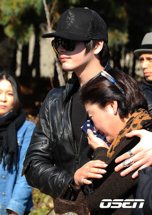 초신성 성제가 눈물을 흘리고 있는 윤학의 어머니를 위로하고 있다.