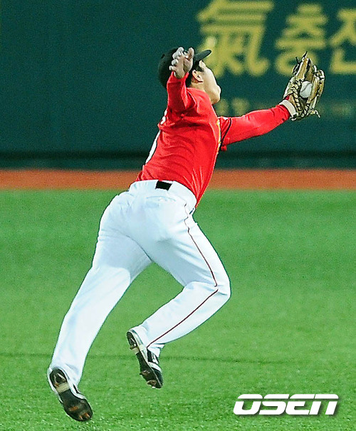 '2011 롯데카드 프로야구 한국시리즈'삼성 라이온즈와 SK 와이번스 경기 1차전 6회말 2사 만루 진갑용의 잘맞은 타구를 SK 정근우가 멋지게 잡고 있다