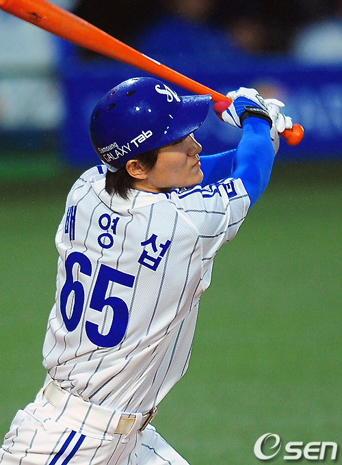 이날 경기를 앞두고 "통증은 없다. 긴장되지만 잘 할 것으로 믿는다"는 배영섭은 9번 중견수로 선발 출장해 3회 유격수 앞 땅볼로 물러났지만 5회 우익수 앞에 떨어지는 안타를 때렸다.