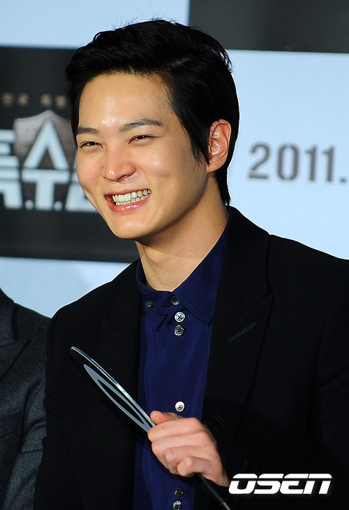 26일 오전 서울 롯데시네마 건대입구점에서 열린 영화 ‘특수본’ 제작보고회에서 주원이 환하게 웃으며 부채질을 하고 있다.