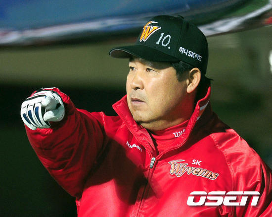 '2011 롯데카드 프로야구 한국시리즈' 2차전 삼성 라이온즈와 SK 와이번스 4회초 2사 2루 이만수 감독이 최동수를 대타로 내보내고 있다.