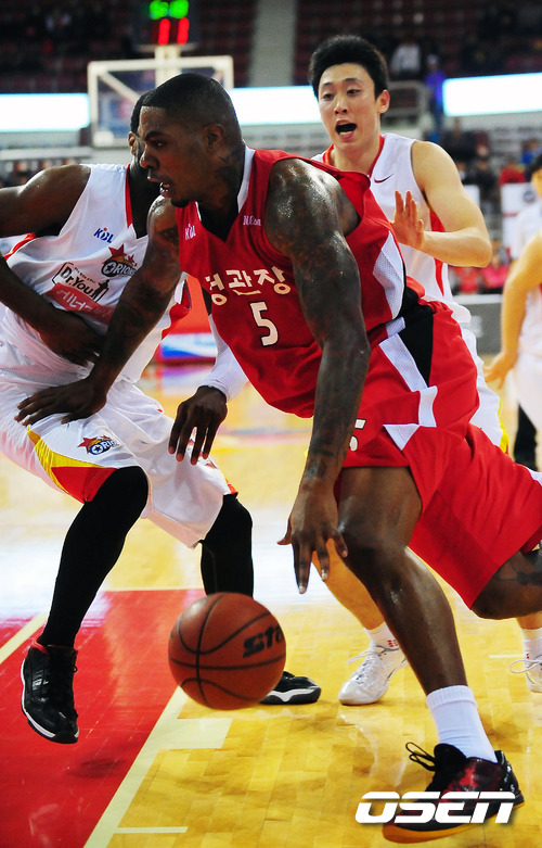16일 오후 안양실내체육관에서 열린 '2011~2012 KB국민카드 프로농구' 안양 KGC와 고양 오리온스 경기에서 2쿼터 KGC의 화이트가 돌파를 시도하고 있다.
