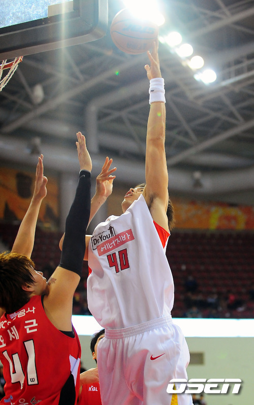 26일 오후 안양실내체육관에서 열린 '2011~2012 KB국민카드 프로농구' 안양 KGC와 고양 오리온스 경기에서 3쿼터 오리온스 이동준이 레이업슛을 시도하고 있다.