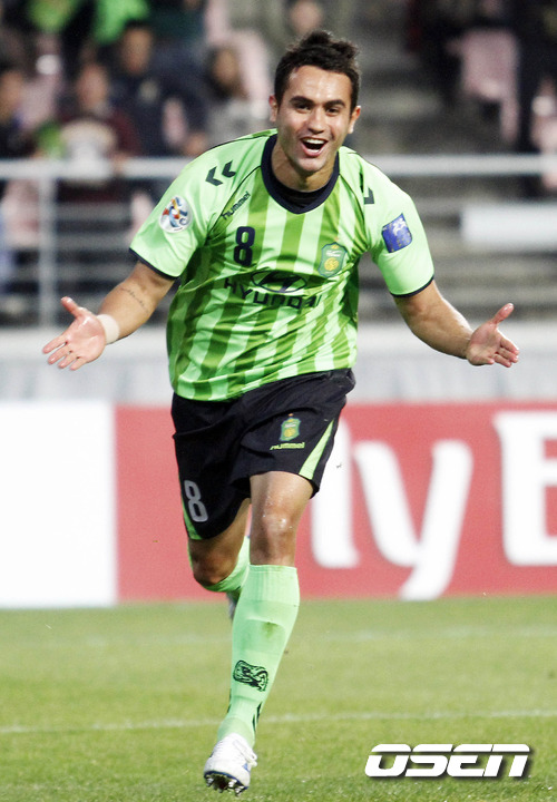 [OSEN=전주월드컵경기장 ,백승철 인턴기자] 26일 오후 전주월드컵경기장에서 열린 '2011 아시아축구연맹(AFC) 챔피언스리그' 4강 2차전 전북 현대와 알 이티하드(사우디아라비아)의 경기 전반 전북 에닝요가 골을 넣은 후 기뻐하고 있다.