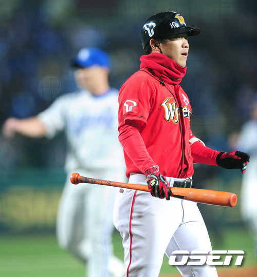 정근우가 삼진을 당하고 아쉬운 표정으로 덕아웃으로 가고 있다. /spjj@osen.co.kr