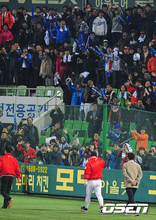 경기후 SK 이만수 감독대행이 경기장을 나서자 대구 팬들이 이만수를 연호하며 격려하고 있다./jpnews@osen.co.kr