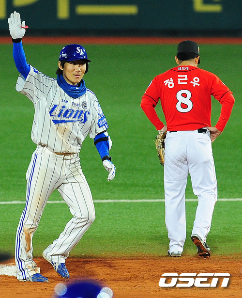 물론 최동수는 8회초 2사 1,2루에서 '끝판대장' 오승환을 상대로 중전안타를 날렸다. 그러나 2루 주자 최정이 홈에서 아웃되며 그 가치를 인정받지 못했다.