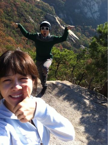 사진 속 그들은 멋진 산을 배경으로 힘든 기색 하나 없이 마냥 즐거운 모습이다. 옥주현은 매력적인 눈웃음을 선보였으며 김범수는 그의 뒤에서 코믹한 포즈를 취해 존재감을 뽐냈다.