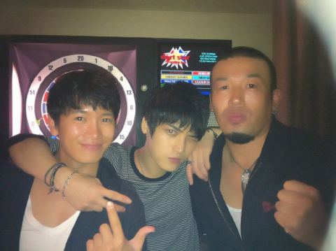 김재중은 27일 오전 자신의 트위터를 통해 "지성형, JJ, 무사시형. 두 형들이 너무 친해져버렸다"라는 글과 함께 한 장의 사진을 게재했다.