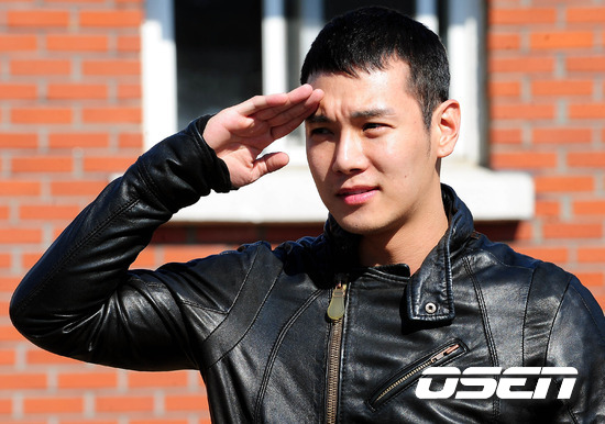 [OSEN=논산 ,백승철 인턴기자] 27일 오후 육군 논산훈련소를 통해 입소하는 가수 환희가 훈련소 인근 주차장에서 팬들을 향해 거수경례를 하고 있다.