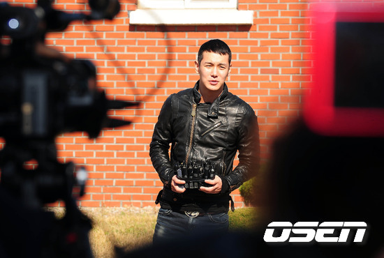 [OSEN=논산 ,백승철 인턴기자] 27일 오후 육군 논산훈련소를 통해 입소하는 가수 환희가 훈련소 인근 주차장에서 취재진들과 인터뷰를 하고 있다.