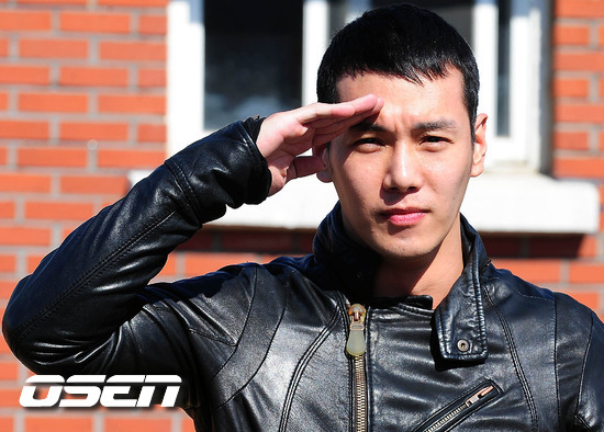[OSEN=논산 ,백승철 인턴기자] 27일 오후 육군 논산훈련소를 통해 입소하는 가수 환희가 훈련소 인근 주차장에서 팬들을 향해 거수경례를 하고 있다.