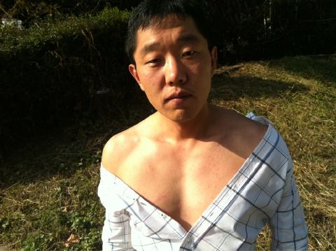 10.26 서울시장 보궐선거 투표율 50%가 넘으면 옷을 벗겠다고 공약(?)한 방송인 김제동이 약속대로 상의를 탈의했다.