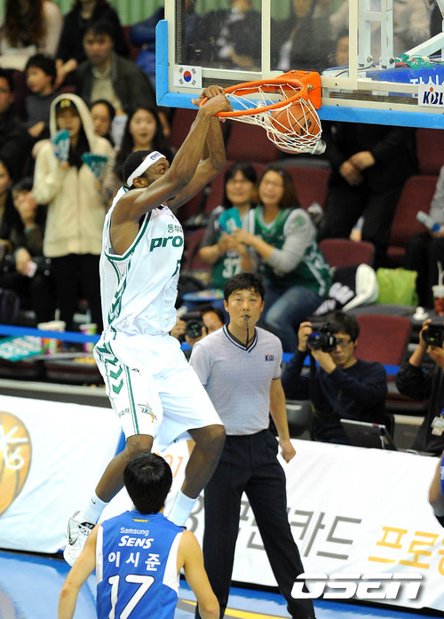 4쿼터 동부 벤슨이 덩크슛을 성공시키고 있다.