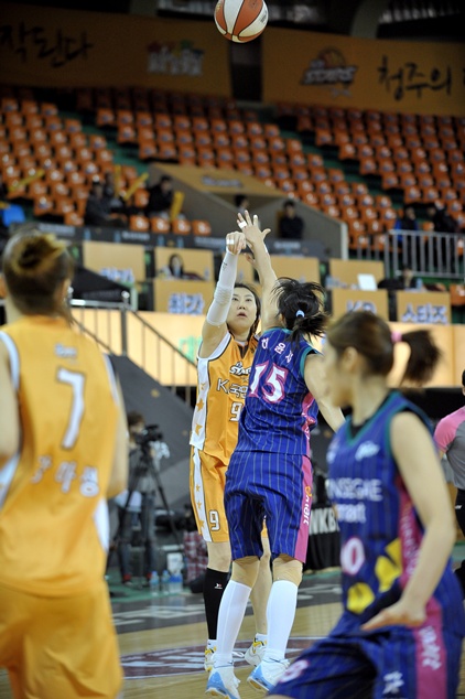 정선민, 변연하 쌍포를 앞세운 청주 KB국민은행 스타즈가 부천 신세계를 꺾고 공동 선두로 올라섰다.