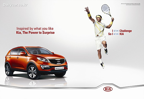 이외에도 최근 화제를 모으고 있는 페이스북(http://www.facebook.com/kiamotorsworldwide)에서 홍보대사인 테니스 스타 라파엘 나달 선수를 등장시킨 기업 이미지 캠페인을 실시한다.