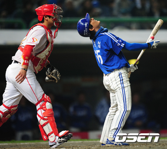 9회초 2사 2루에서 삼성 배영섭이 삼진을 당하고 아쉬워하고 있다./jpnews@osen.co.kr