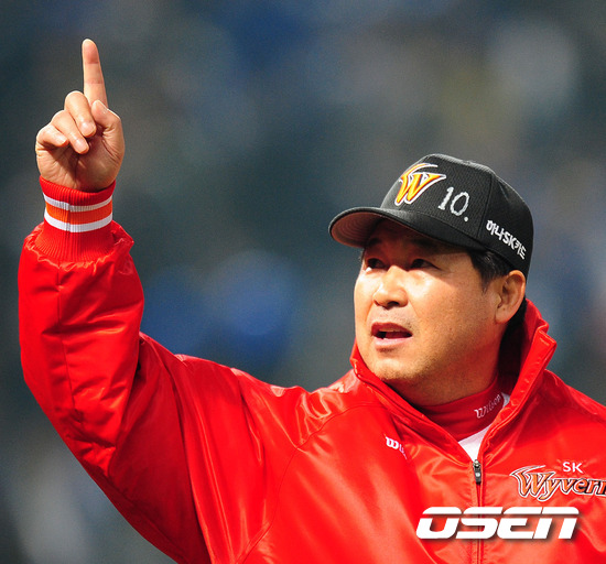 이 감독대행은 "송은범 다음으로 포수 정상호가 없었다면 여기까지 못올라왔다. 당대 최고의 포수다. 허리, 무릎, 골반, 발목이 다 아픈데도 경기 못나가겠다는 말 없이 다 나갔다. 2차전에서 빼주려고 했는데도 본인이 나가겠다는 투지가 보였다"고 정상호에게 고마움을 전했다.