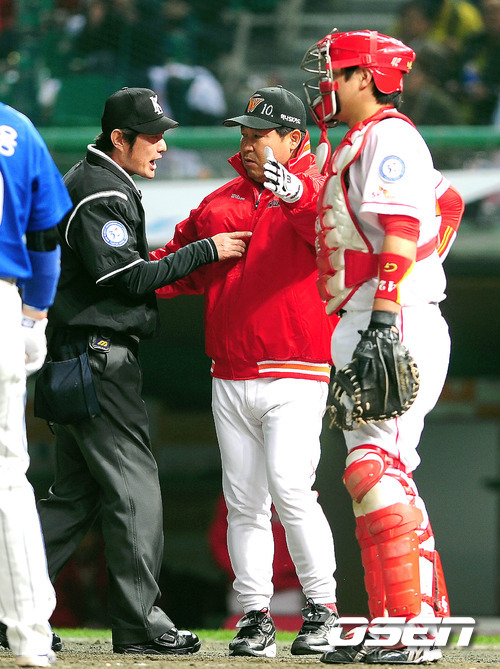 이만수 감독대행은 28일 문학구장에서 열린 '2011 롯데카드 프로야구' 삼성과의 한국시리즈 3차전에서 구심의 볼 판정에 강한 불만을 나타냈다. 심판의 고유영역인 스트라이크-볼 판정에 대한 항의라는 점에서 눈길을 끌었다.