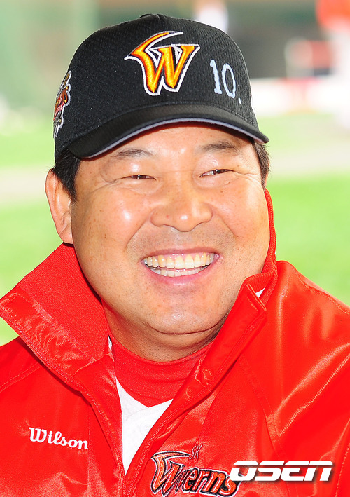 29일 오후 인천문학구장에서 열린 ‘2011 롯데카드 프로야구 한국시리즈 4차전’이 열릴 예정인 가운데 경기 전 양팀의 훈련시간에서 이만수 감독대행이 환하게 웃고 있다.