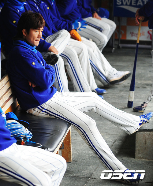 29일 오후 인천문학구장에서 열린 ‘2011 롯데카드 프로야구 한국시리즈 4차전’ SK 와이번스와 삼성 라이온즈의 경기가 열릴 예정인 가운데 경기 전 양팀의 훈련시간에 김상수가 SK의 훈련을 비장한 얼굴로 지켜보고 있다.