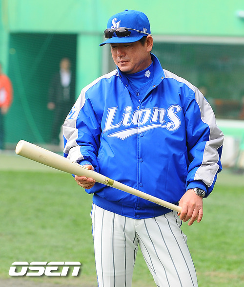 29일 오전 인천 문학구장서 열리는 '2011 롯데카드 프로야구 한국시리즈 4차전' SK 와이번스와 삼성 라이온즈의 경기에 앞서 삼성 류중일 감독이 방망이를 바라보고 있다.