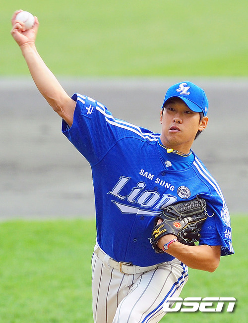 '2011 롯데카드 프로야구 한국시리즈' 4차전 SK 와이번스와 삼성 라이온즈의 경기에서 삼성 선발 윤성환이 힘차게 공을 뿌리고 있다.