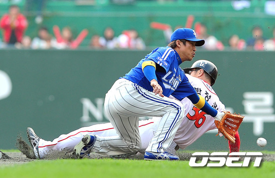 '2011 롯데카드 프로야구 한국시리즈' 4차전 SK 와이번스와 삼성 라이온즈의 경기 2회말 1사 박정권이 2루 도루에성공하고있다.